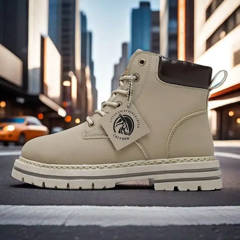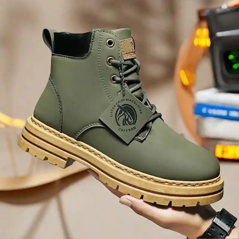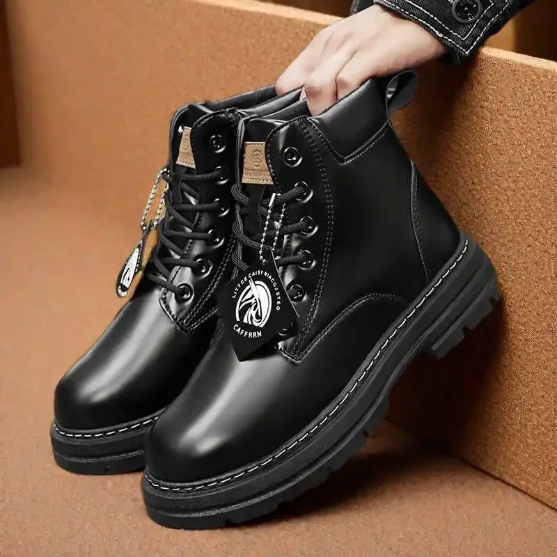 2025 High Top Boots Men Leather Shoes Fashion Motorcycle Ankle Boots Men's Winter Boots Man Shoe Basketball Lace-Up Botas Hombre