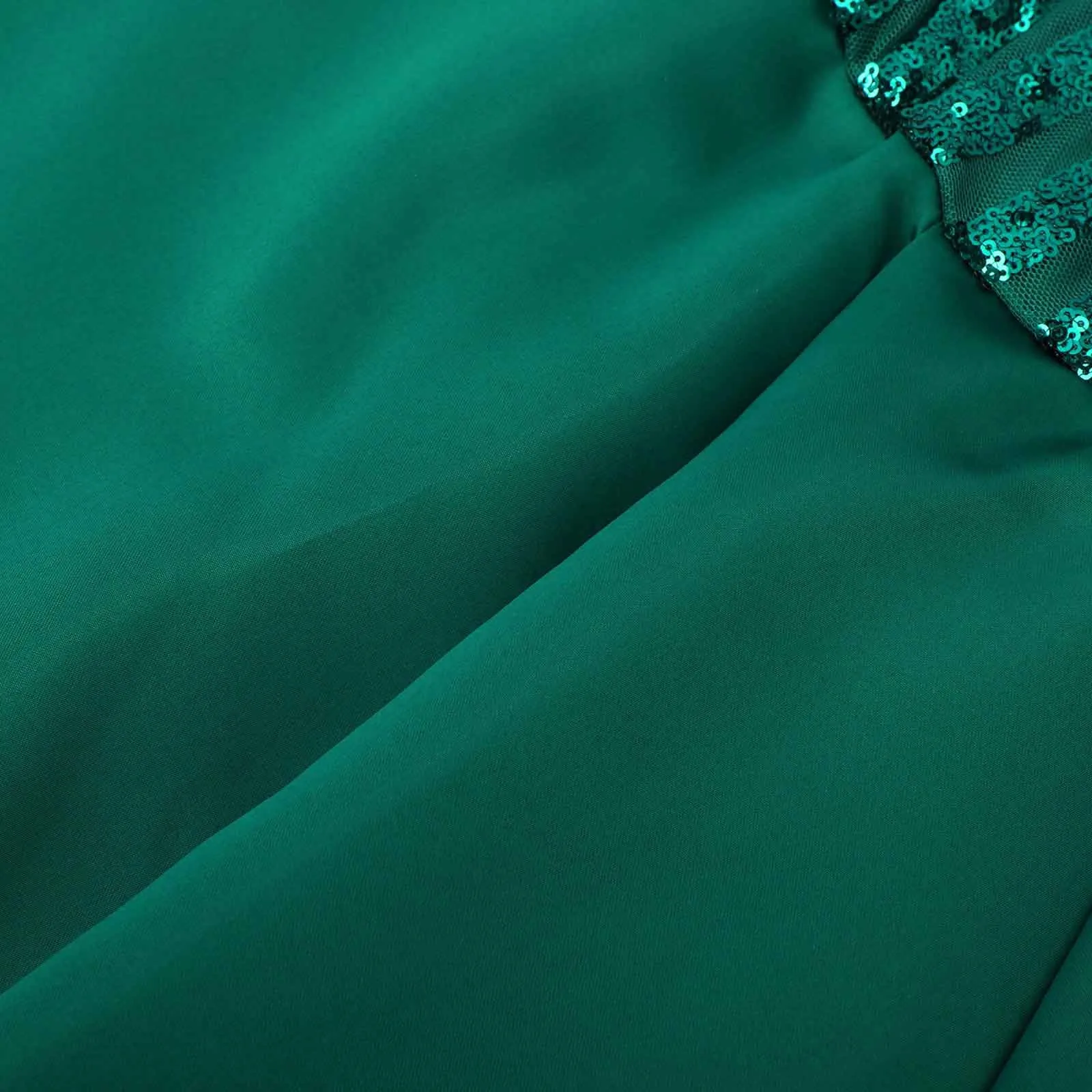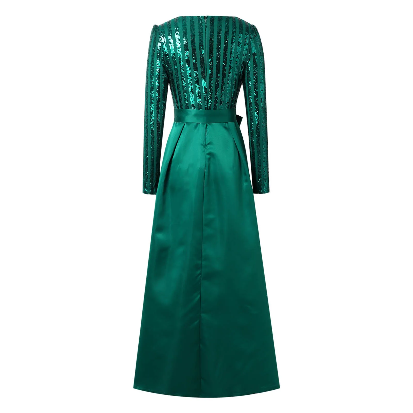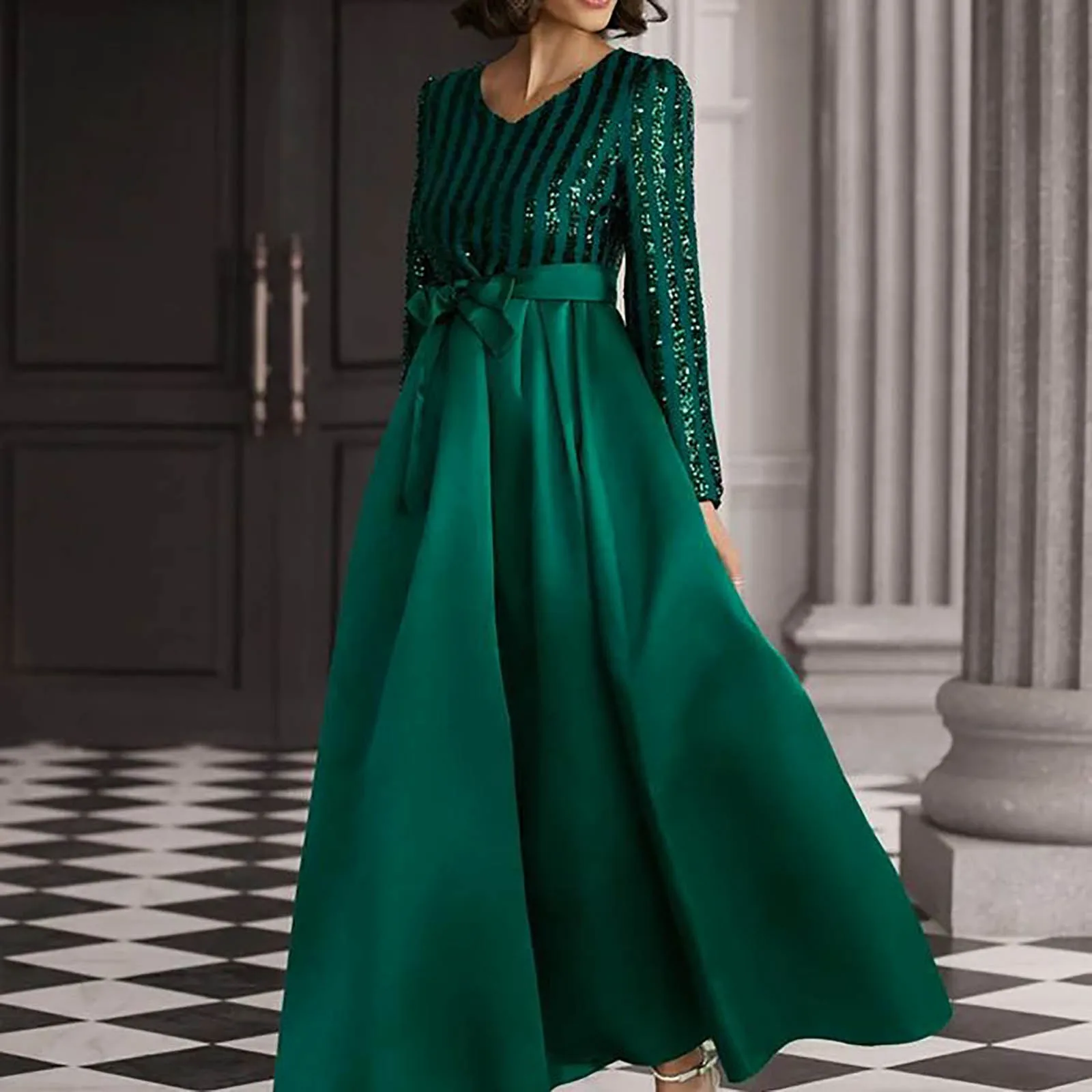 Elegant Sequin Cocktail Party Swing Dress Sexy V Neck Long Sleeves Dress Gown Robes Women Banquet Evening Dresses Vestidos