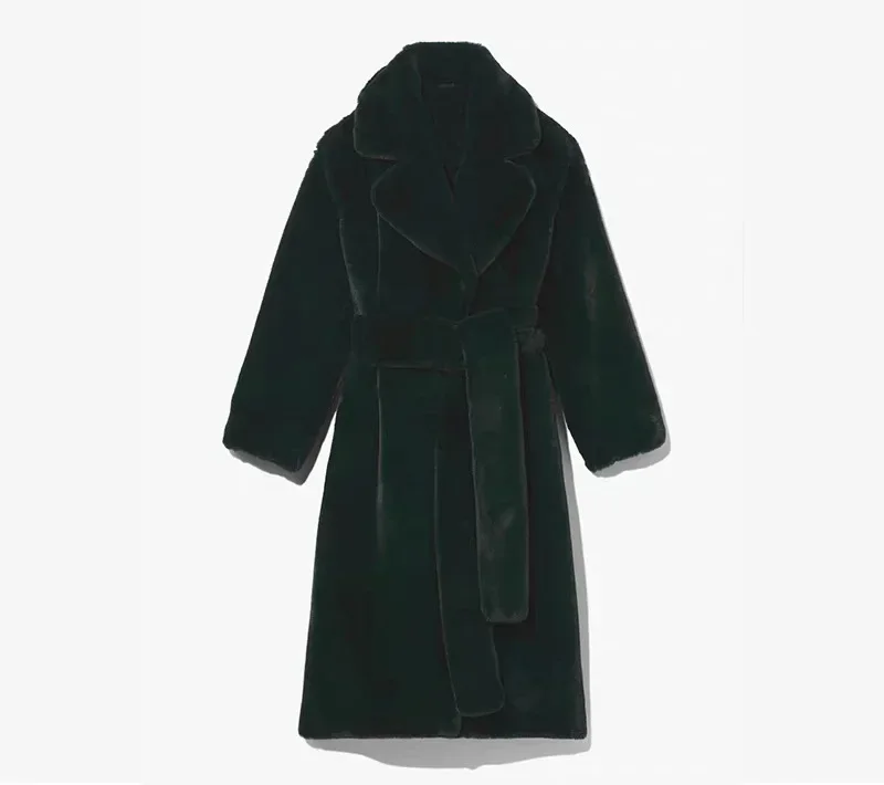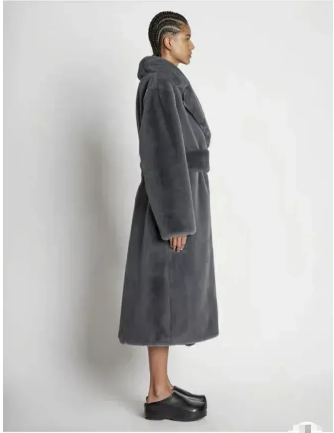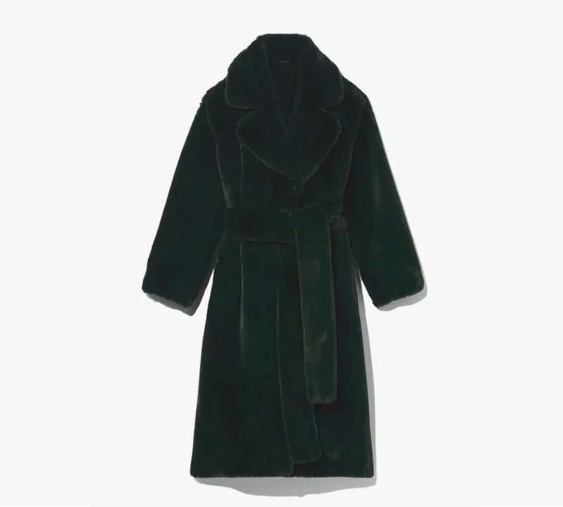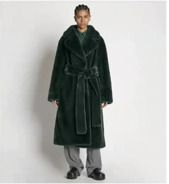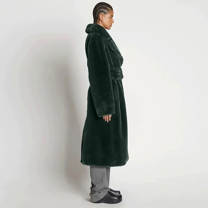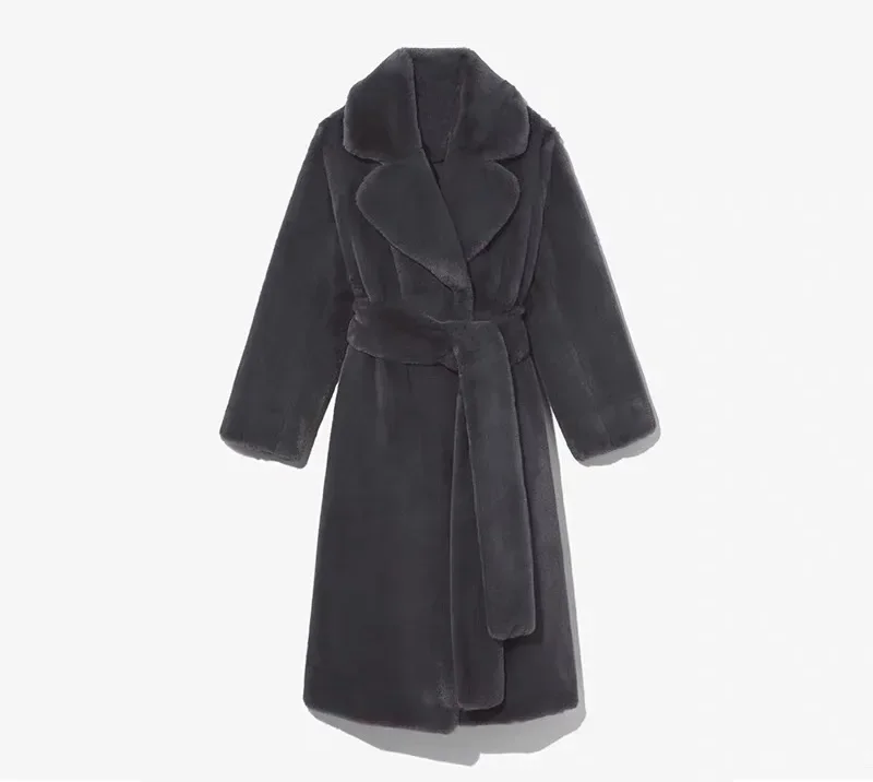 Faux Fur Furry Long Coat Women With Belt Thickened Warm Turndown Collar Female Plush Jacket Autumn Winter Fashion Lady Overcoat