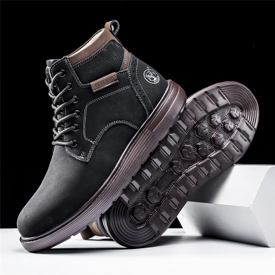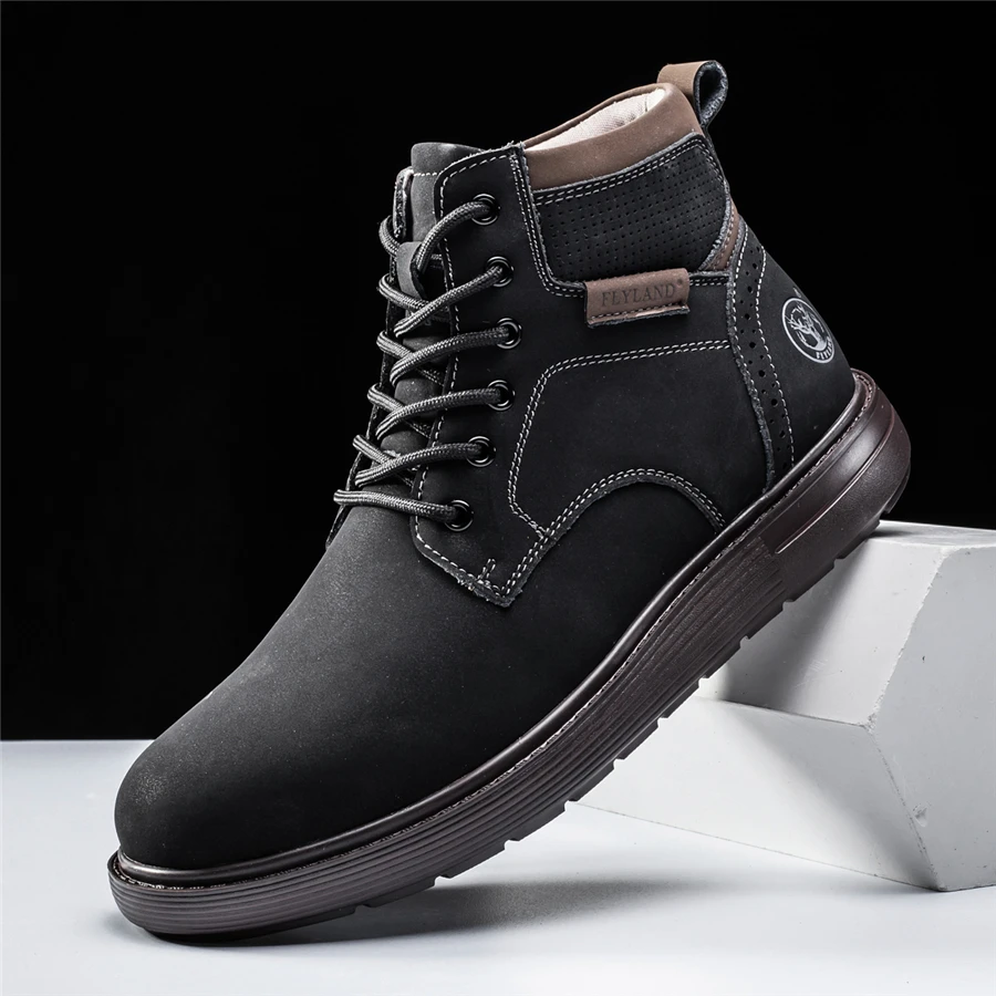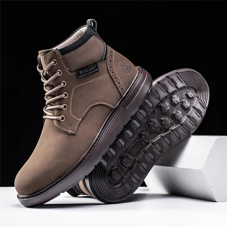FLYLAND Fashion Men‘s Chukka Boots Casual Handmade Genuine Leather Men Shoes Anti-Slip Male Ankle Boot