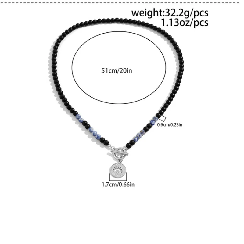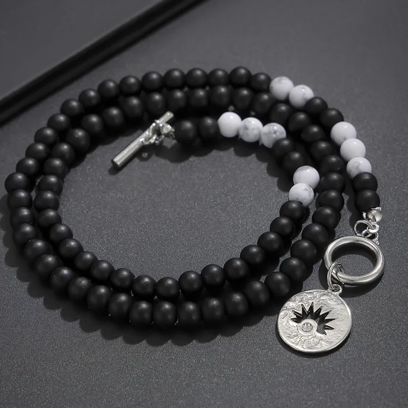 Model Number: Black Beads with Square Pendant Necklace for Men